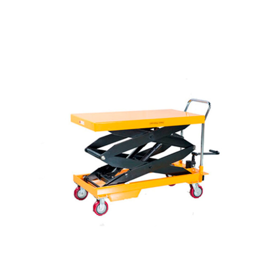 Mesa de transporte diseñada para operar con precisión y estabilidad en espacios industriales. Este tipo de mesa permite la manipulación de cargas hasta 1000kgs con ajustes de altura flexibles y ruedas resistentes que facilitan su movilidad, asegurando un traslado eficiente y seguro dentro del área de trabajo.