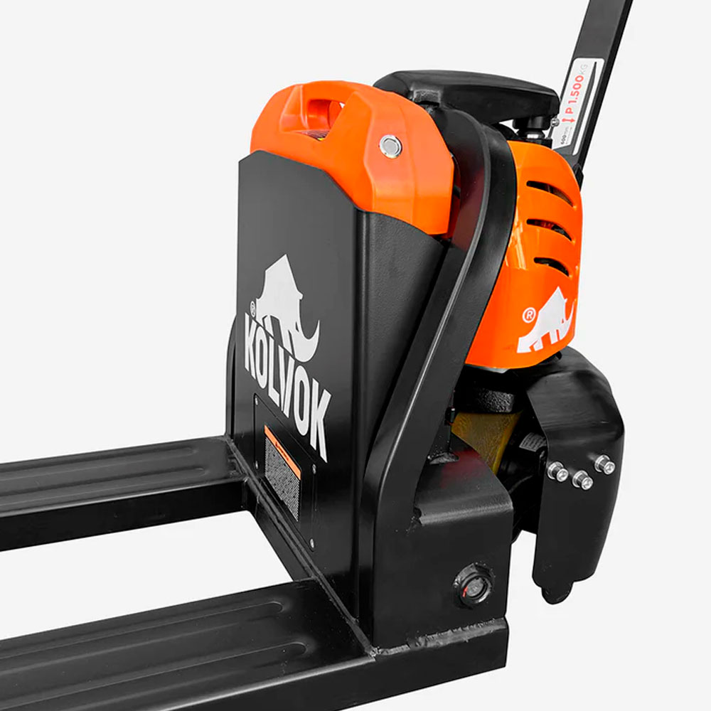 La transpaleta eléctrica KOLVOK PTLi15B5, con batería de litio se distingue por su diseño innovador y su mango simplificado, que ofrece un control excepcional. Su excelente maniobrabilidad y precisión en el manejo la convierten en una herramienta ideal para operar con seguridad, comodidad y eficiencia, especialmente en espacios reducidos. Cuenta con una capacidad de carga de hasta 1.500 kg, lo que la hace perfecta para el traslado de cargas pesadas en entornos exigentes.