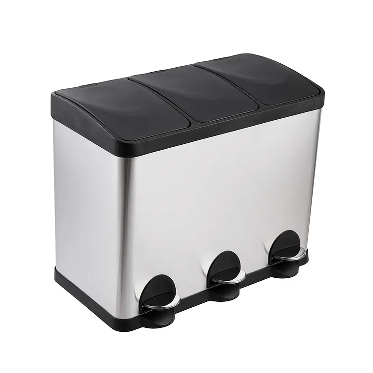 ¿Buscas una solución para separar los residuos en tu cocina? El basurero triple de Soin facilita el reciclaje al permitir clasificar distintos tipos de desechos, como plásticos, orgánicos y papel. Cada compartimento incluye un balde interior removible de 15 litros, lo que permite vaciarlo y limpiarlo de forma independiente. Su sistema de cierre es suave y hermético, evitando el contacto directo con la basura, lo que lo convierte en una opción práctica, cómoda y funcional.