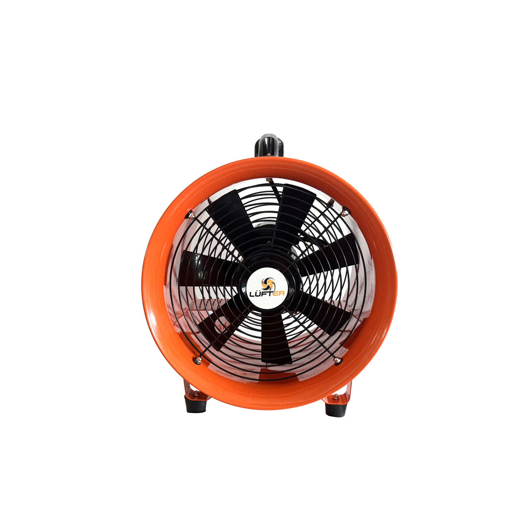 Este equipo corresponde a un extractor axial portátil, ideal para eliminar gases nocivos, vapores, humedad y aire contaminado. Su cuerpo metálico cilíndrico en color naranja de alta visibilidad ofrece máxima protección y facilita la operación en faenas con poca iluminación. Además, cuenta con rejillas protectoras, una asa superior ergonómica y patas antideslizantes, que permiten un transporte seguro y un posicionamiento estable en cualquier superficie.