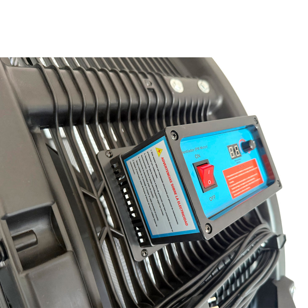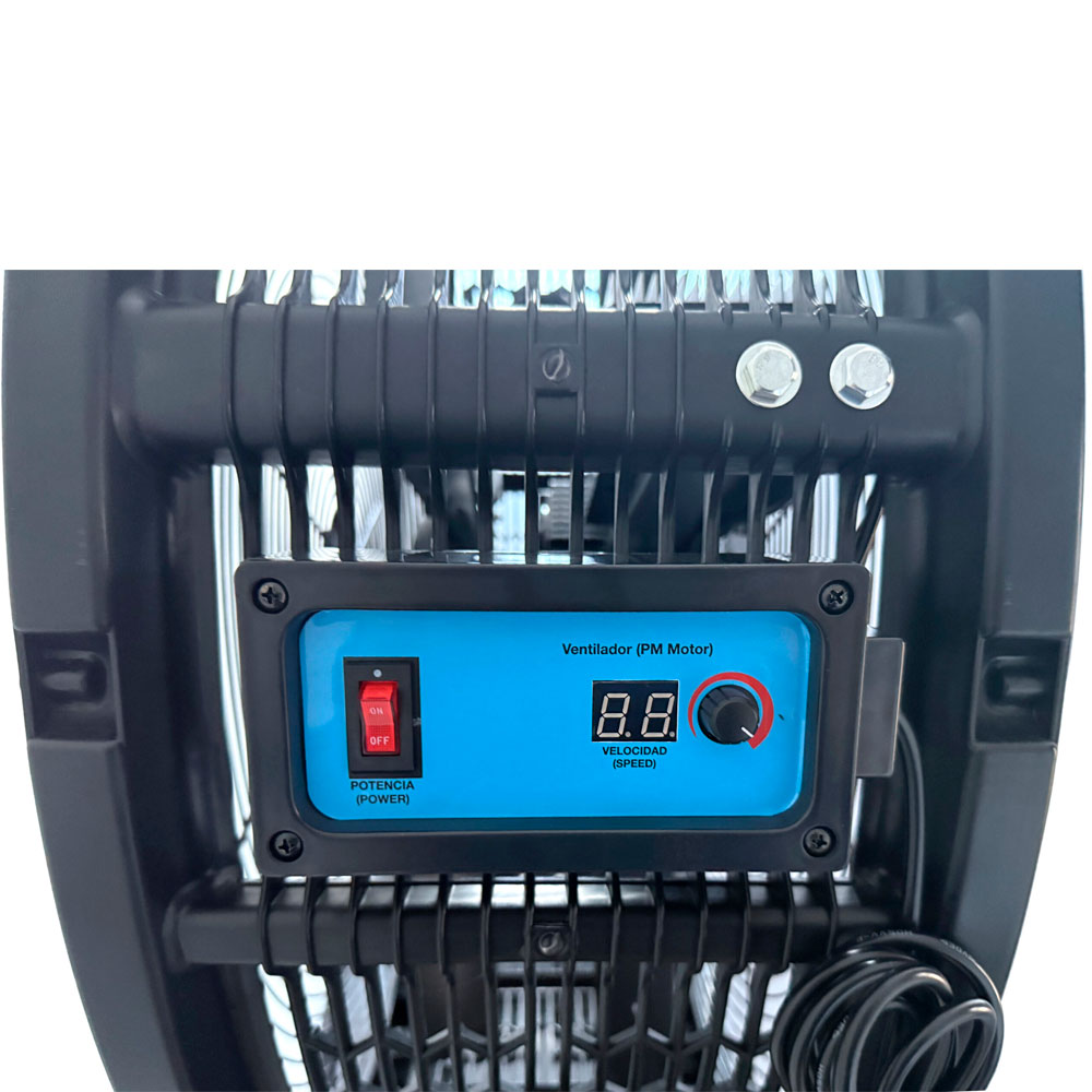 Panel de control digital: En la parte superior izquierda del ventilador, con botones de control visibles