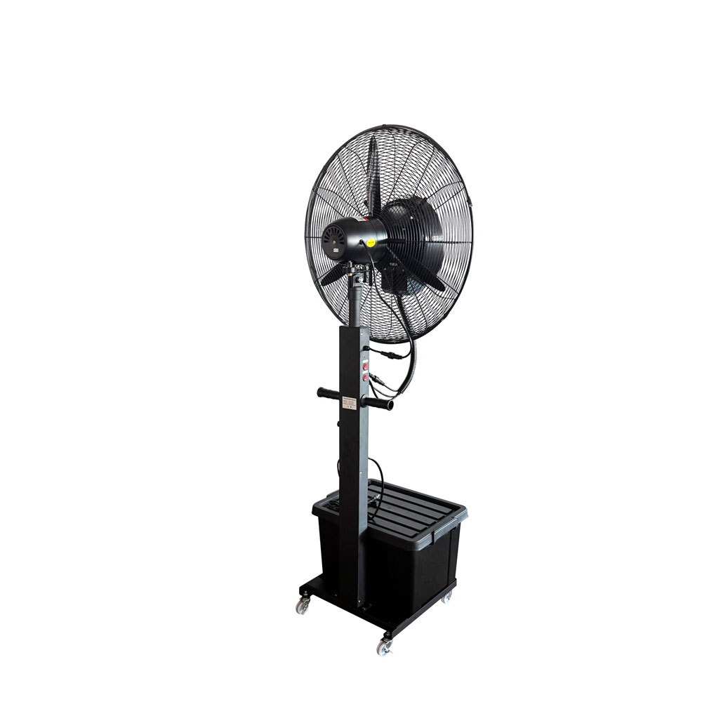 El ventilador de pedestal con nebulizador 26″ pulgadas está diseñado para bajar la temperatura ambiente de manera rápida y eficaz, cuenta con diversas aplicaciones ya que puede quedar fijo o con oscilación automática, trabaja con alta velocidad y puede enfriar de forma rápida y eficaz grandes áreas como empresa, fábricas, tiendas, oficinas, restaurantes, galpones y otros lugares públicos, además proporciona un alivio económico al intenso calor del verano.